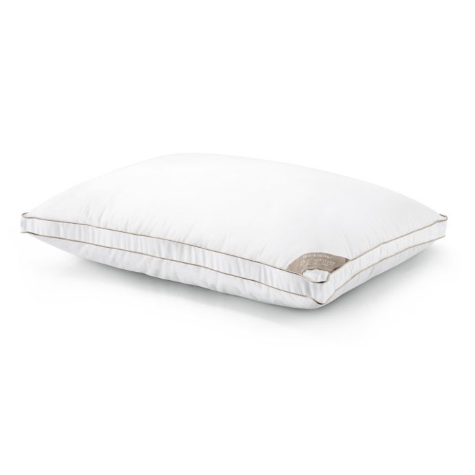 This 800 fill power white goose down pillow has a luxe 100 cotton.
